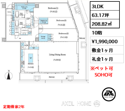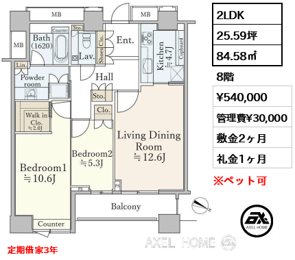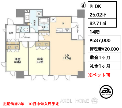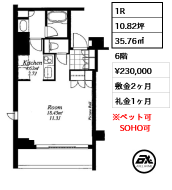 敷1ヶ月 礼0ヶ月 |