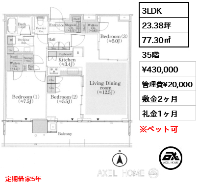 敷76.5万円 礼38.25万円 |