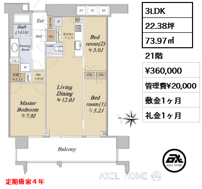 敷1ヶ月 礼0ヶ月 |