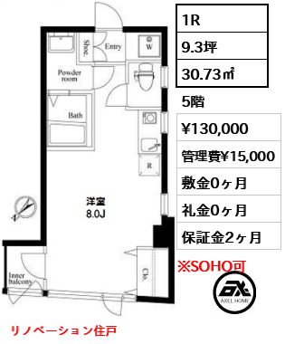 | 賃料 | 130,000円 | 管理費 | 15,000円 |