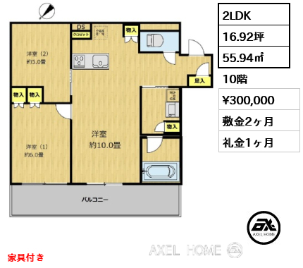 | 間取り | 2LDK | 階数 | 10階 |
