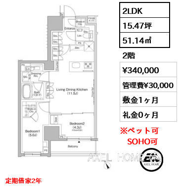 | 備考 | 定期借家2年 | ||