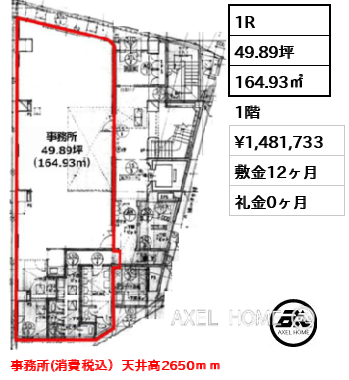 備考 事務所(消費税込)天井高2650mm