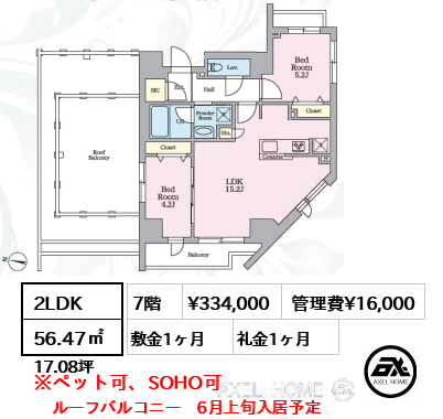 | 備考 | ルーフバルコニー 6月上旬入居予定 | ||