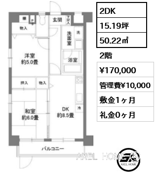 | 間取り | 2DK | 階数 | 2階 |