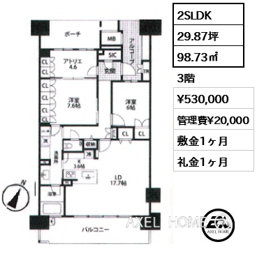 | 賃料 | 530,000円 | 管理費 | 20,000円 |