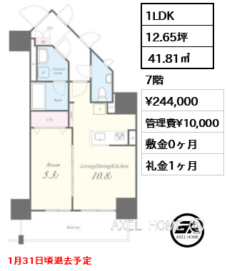 | 備考 | 1月31日頃退去予定 | ||