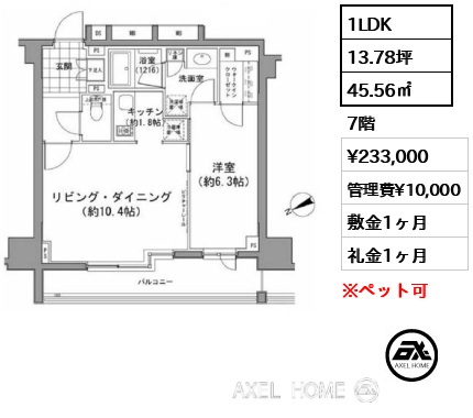 賃料 管理費 敷礼 間取り 面積