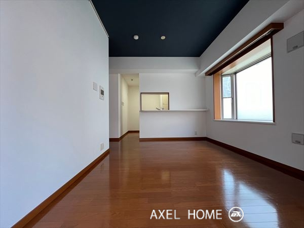 お洒落な外観と正統派分譲仕様の室内が良いギャップを感じるマンションです。 1998年築なので、一部リノベーションが入っているお部屋が多いのと、造りもしっかりとしている低層マンションなので賃貸で借りるには全てが丁度良い印象です!今回は1LDK・41㎡のお部屋を内見しました。天井のアクセントカラーが空間にメリハリを与え、床はあたたかみのあるフローリングでナチュラルな雰囲気です。大きな窓とバルコニーから光がしっかり入り、明るく開放感のある空間です。カウンターキッチン越しにリビングを見渡せるレイアウトは会話も弾みそうです。 |