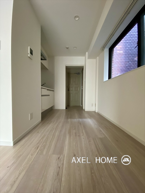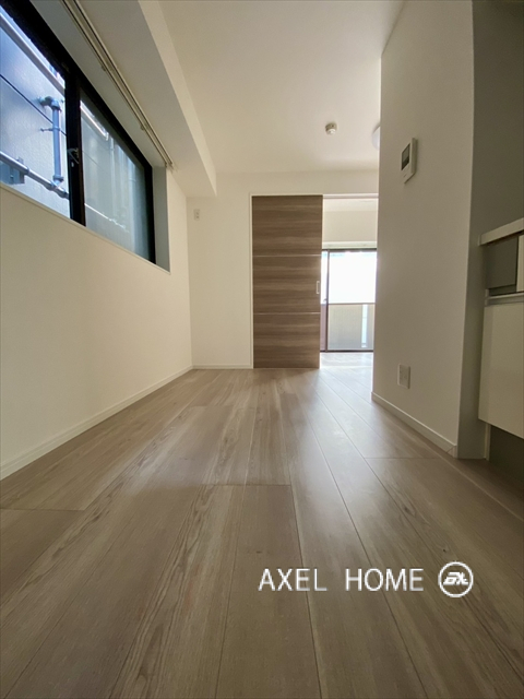 今回内見したお部屋は、1DKタイプの32.10㎡のリノベ済みのお部屋です。玄関を入るとすぐにキッチンスペースがあり、食器棚が設置出来る幅のスペースが確保されています。ダイニングは、2名様掛けのソファーや、小さめのダイニングテーブルを設置出来る丁度良い広さです。水回りはコンパクトにまとまっているので整理もしやすい大きさでした。洋室は約4帖なので、大きなベットは引戸を空けた状態でないと設置出来ませんが、レイアウトによっては、広めのワンルームとして利用する事も可能です。日当たり眺望はあまり期待できませんが、大通り沿いの車の音は気にならず静かな印象です。初めての一人暮らしや、小規模な事務所利用に最適なサイズです。 |