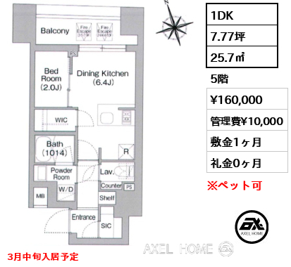 5階 / 1DK / 25.7m2