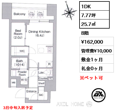 8階 / 1DK / 25.7m2